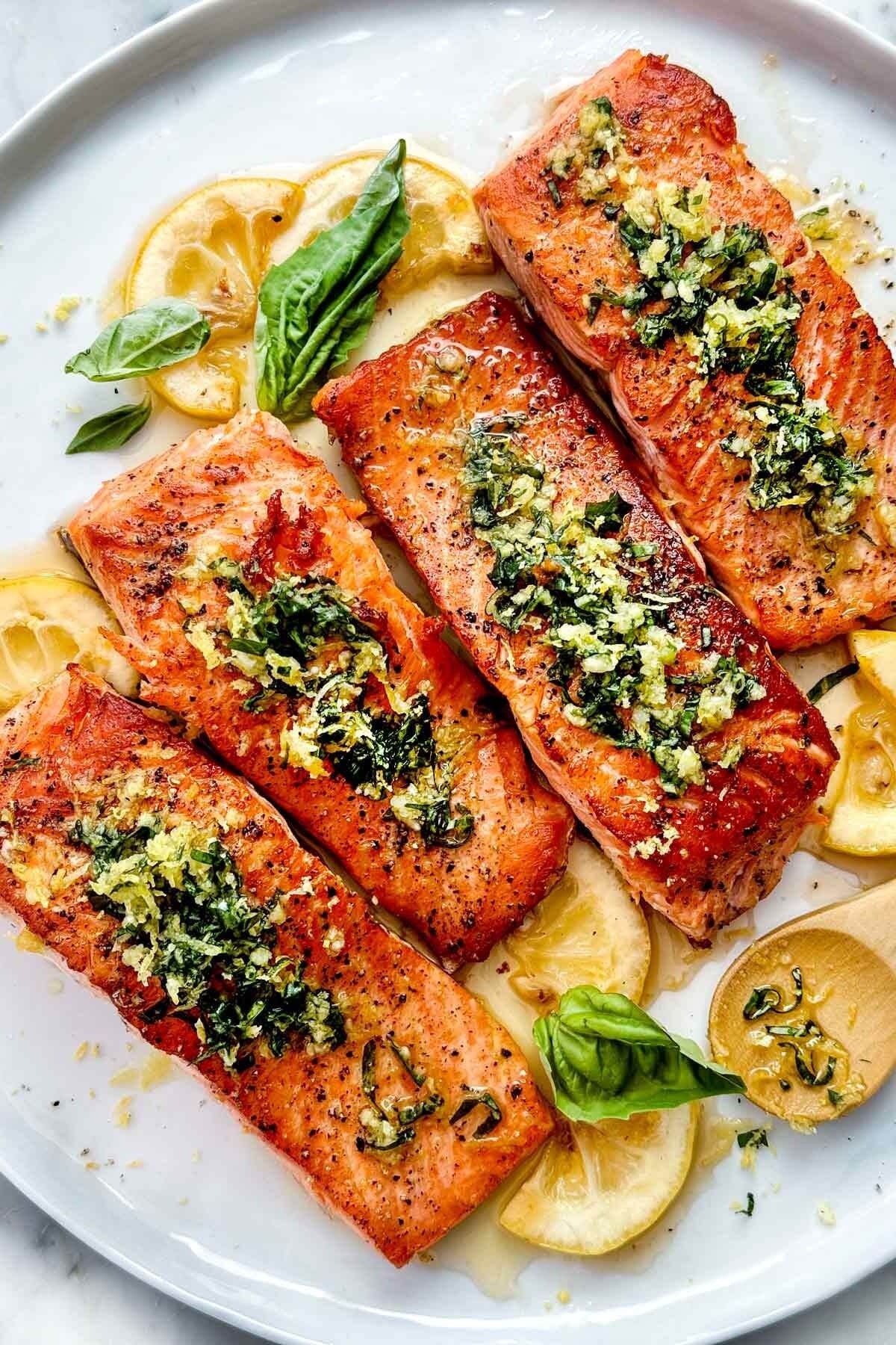 Lemon Butter Salmon with Fresh Basil